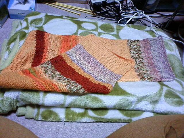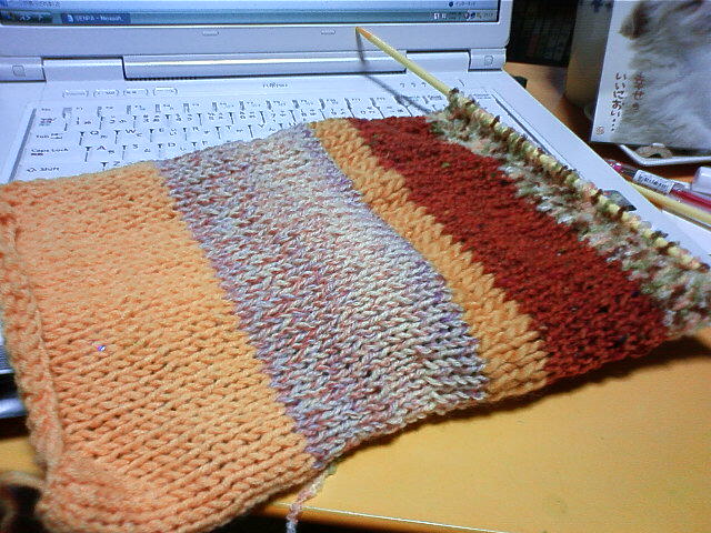 余った毛糸を寄せ集めて、マフラーもどきを作っています。