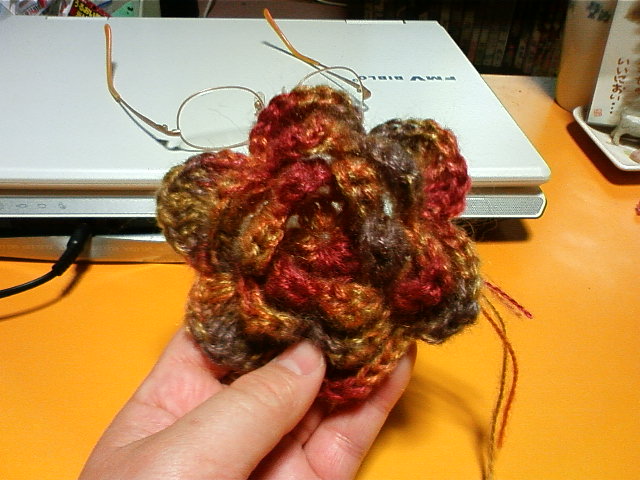 コサージュ作ろうと思って放置していた毛糸があったので、さくっと30分くらいで編みました。