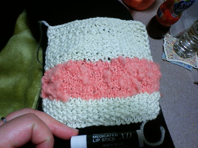 調子に乗って、ピンクのかのこ編みを始めたら、ぞっとするくらいがたがたです。