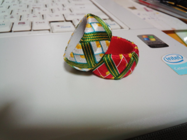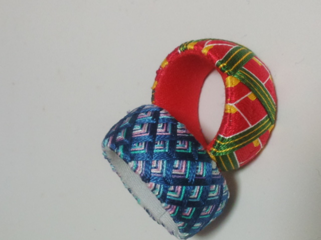 青いのはオリジナルで、タティングのミックスの糸と青の絹糸を使ってみました。